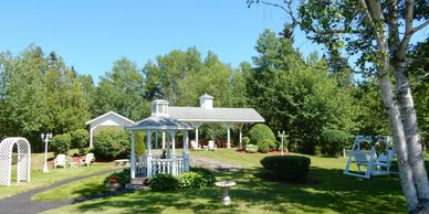We are situated on a serene 5-acre parcel of land surrounded by nature and beautiful gardens. Perfect for your summer wedding!